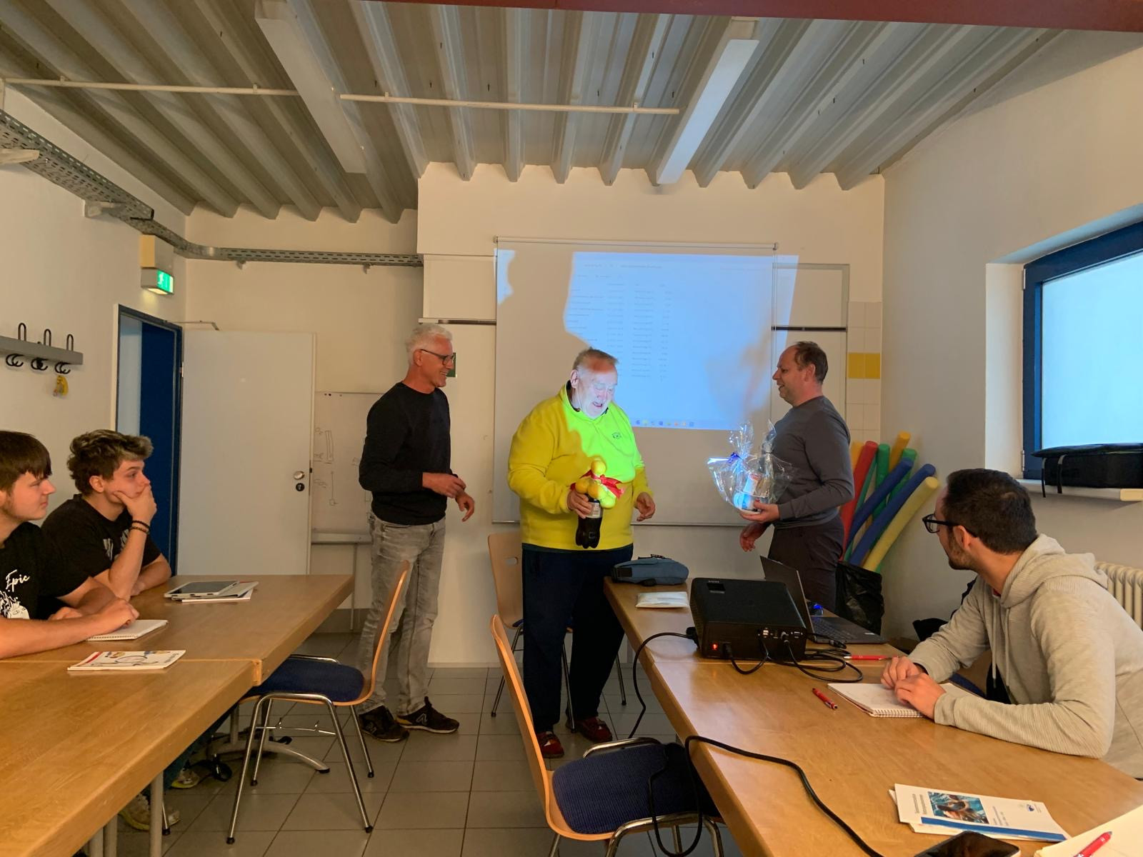 Diesen Anlass wollten sich Clemens Wernitz (Ausbilder/ Prüfer) und Thomas Donath nicht nehmen lassen. In ihrem aktuellen Rettungsschwimmerkurs verabschiedeten sie Eckehard Seidel, der nach 35 Jahren diesen Bereich abgegeben hat.