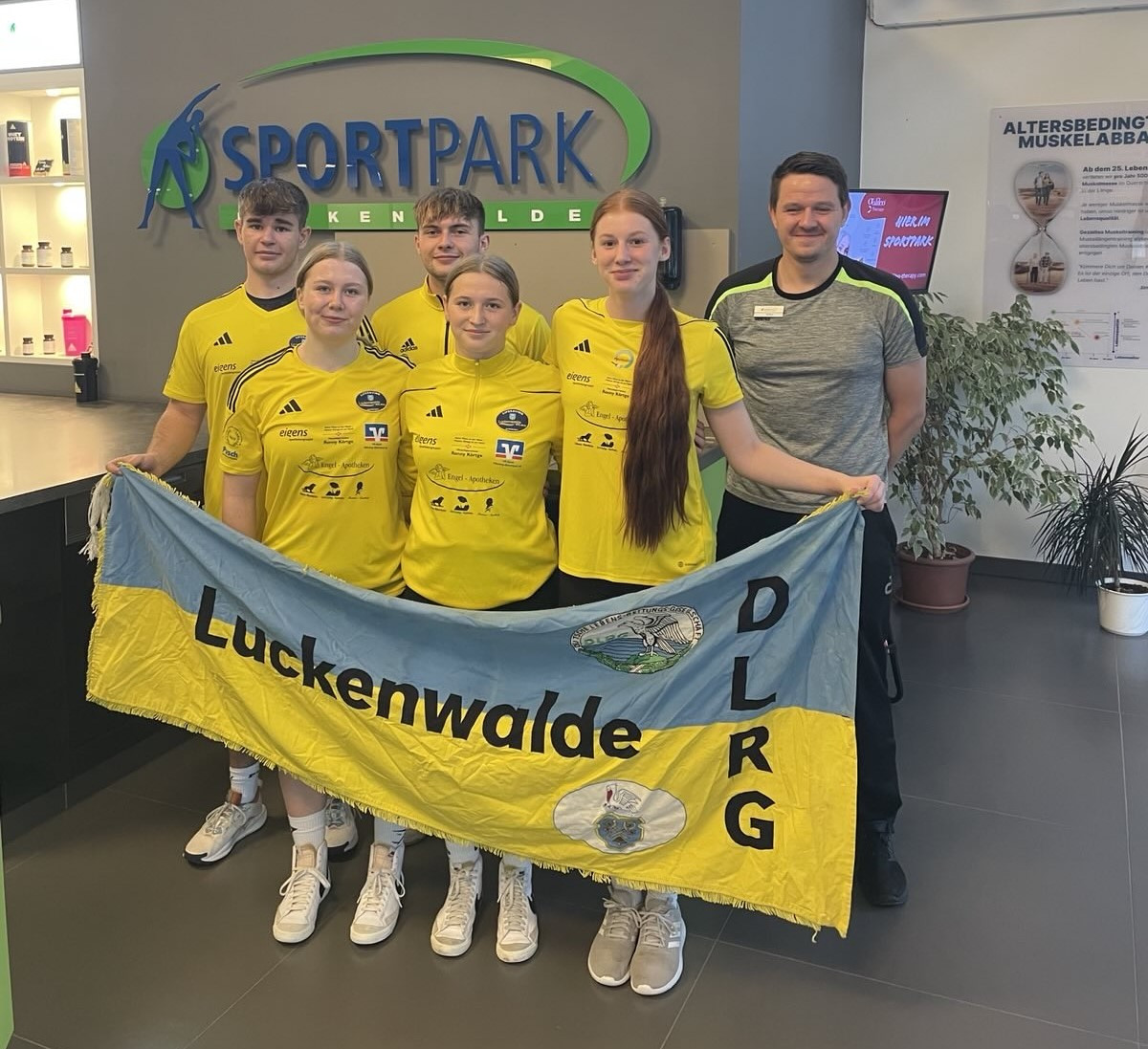 Aktuell verbessern so die großen Rettungsschwimmer*innen der Trainingsgruppe 3 ihre konditionellen Fähigkeiten außerhalb der Schwimmbeckens im Kraft- und Schnelligkeitsbereich im Sportpark Luckenwalde. Durch gute Bedingungen und viel Platz kann ein umfangreiches und vielschichtiges Training durchgeführt werden.