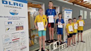 Auf der Zuschauertribüne wurden sie von zahlreichen Eltern und Großeltern angefeuert. Jeweils drei Wettkampfstrecken standen in den Altersklassen auf dem Plan. Bei der Größeren waren es sogar fünf. Jede Wettkampfstrecke wurde einzeln gewertet, so dass zahlreiche Medaillen auf das Konto der Luckenwalder/innen gingen. Im höheren Altersbereich der Rettungssportler/innen gab es eine Gesamtwertung. Am erfolgreichsten waren Luca Paul Gerlach, Mara Walter und Jolina Buchner. Sie gewannen alle Einzelstrecken und auch die Gesamtwertung in ihrer Altersklasse. Zudem wurden viele Veranstaltungsrekorde geschwommen. Das spricht für ein sehr hohes Leistungsniveau, das durch eine sehr gute Trainingsplanung und Trainingsumsetzung erreicht wurde. Einen neuen Veranstaltungsrekord schwammen Maya Püttner, Valentino Mydla, Linnea Seidel, Amaro-Remo Dörr, Mara Walter und Jolina Buchner. Raphael Seidel und Luca Paul Gerlach stellten gleich 2 neue Veranstaltungsrekorde auf. Mit dem Sichtungswettkampf geht das diesjährige Wettkampfjahr zu Ende. Für die größeren Rettungssportler/innen steht noch der Internationale Deutschlandpokal in Warendorf Ende November auf dem Plan.